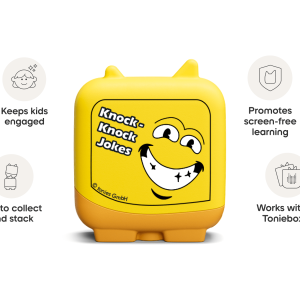 Laugh along with this set of four Tonies. Narrated by actress Jane Lynch. the Kid Comedy set explores all things funny. from joke-telling and knock-knock jokes to your favorite pranks and riddles.