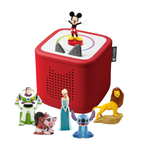 Listen. grow and play in a whole new way with Toniebox 2. This exclusive bundle comes with a Sunset Red Toniebox 2. Disney Lilo & Stitch Tonies. Disney Frozen Elsa Tonie. Disney Toy Story 2 Buzz Lightyear Tonie. Disney Mickey Mouse Tonie. Disney Lion King Tonie. and Disney Moana 2 Simea Tonie.